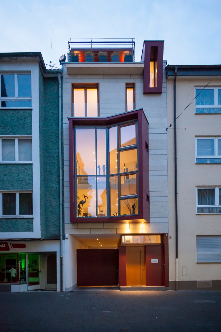 Im Herzen Bonns, direkt gegenüber der Remigiuskirche, bestand seit mehr als 66 Jahren eine Baulücke. Wegen eines bestehenden Durchfahrtsrechts dient das Erdgeschoss als Erschließungs- und Stellplatzebene.